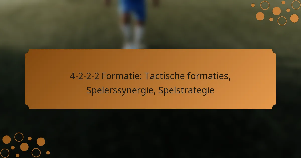 De 4-2-2-2 formatie is een tactische opstelling in het voetbal die vier verdedigers, twee centrale middenvelders, twee aanvallende middenvelders en twee aanvallers omvat. Deze formatie legt de nadruk op controle op het middenveld en snelle overgangen, waardoor teams zowel solide kunnen verdedigen als effectief kunnen aanvallen.
